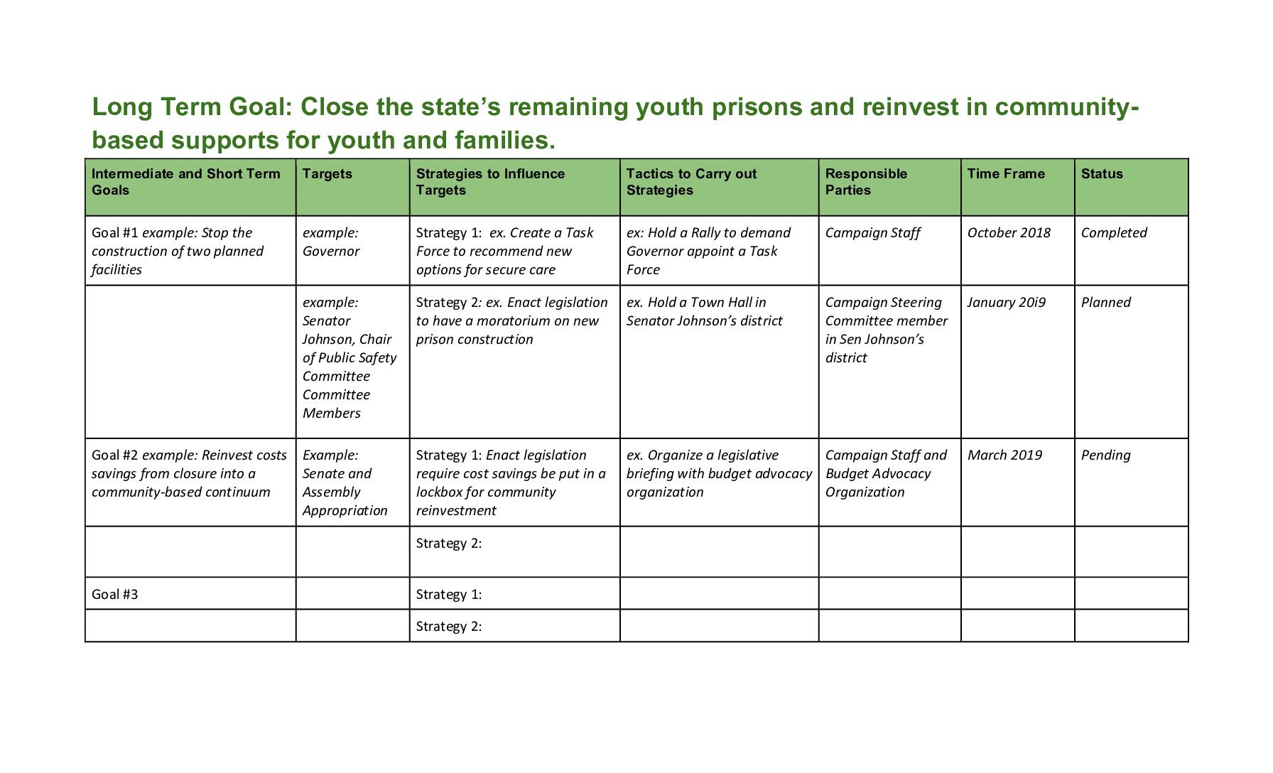 Long Term Goal: Close the state’s remaining youth prisons and reinvest in community based supports for youth and families.